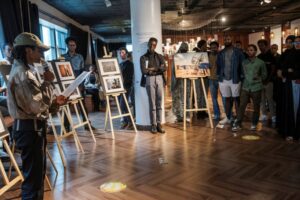 What made Gaza Habibti especially moving was how immersive it felt. Visitors didn’t just view photographs—they walked through them. Performers delivered monologues in different corners of the space, responding to the images in real time. One of the actors, Mugambi Ikiara, was among those whose live readings invited the audience deeper into the stories behind the stills.