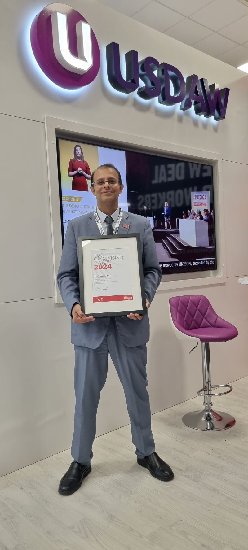 On Tuesday 10th September, First Generation British Born Pakistani – Syed Hadi Naqvi won the TUC Organising Award 2024.